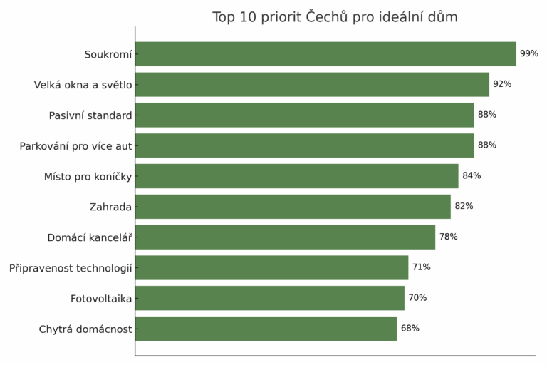 Češi mají jasno: ideální dům musí především nabídnout soukromí, to je klíčové pro 99 % lidí. Pro 92 % Čechů...