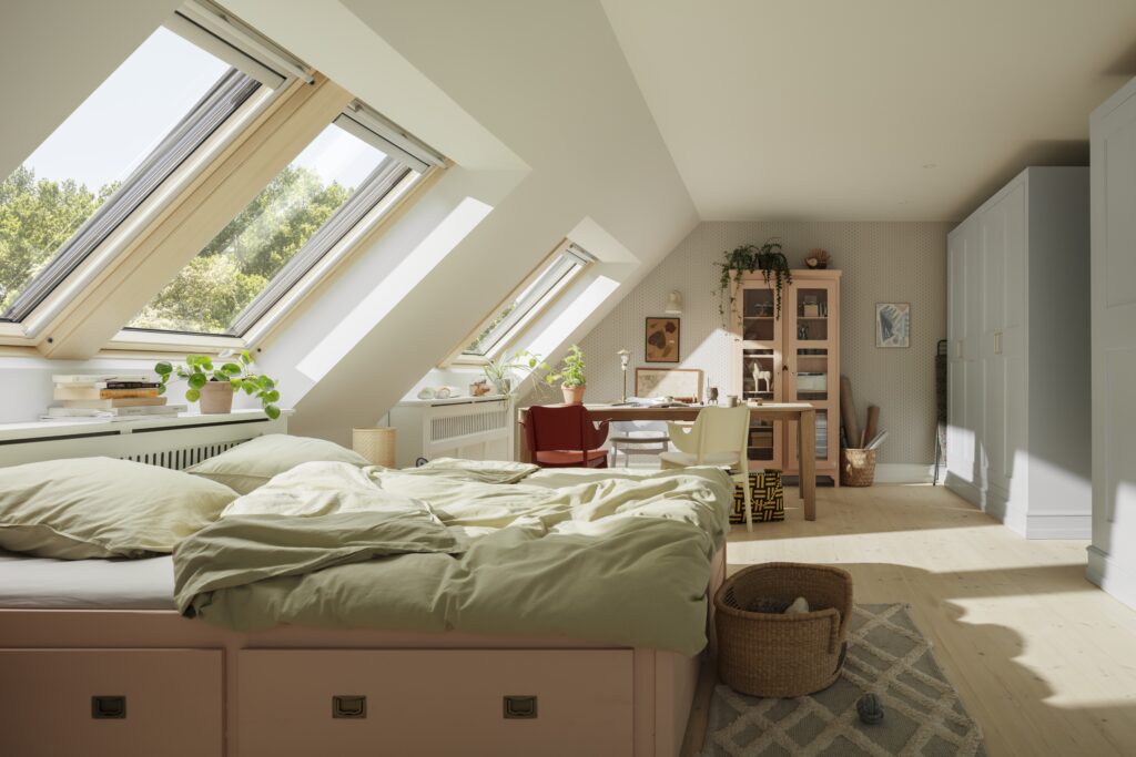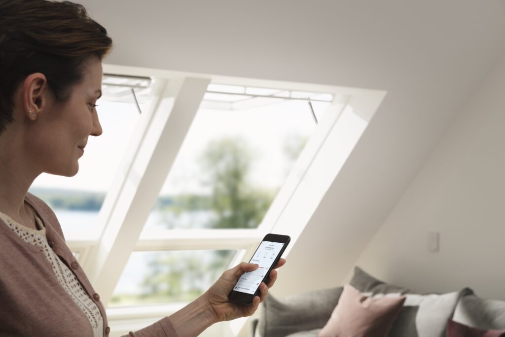 • Další revoluci pak přinesla éra chytrých technologií. V roce 2018 uvedl VELUX inteligentní řešení, které automaticky řídí otevírání, zavírání i zastiňování oken. Senzory hlídají teplotu, vlhkost a čistotu vzduchu (obsah CO₂) a podle potřeby okna větrají. Systém navíc pracuje s online předpovědí počasí – například vyvětrá včas před bouřkou nebo v případě veder posune větrání na pozdější dobu. A díky analýze denních zvyklostí se přizpůsobí chodu každé domácnosti.