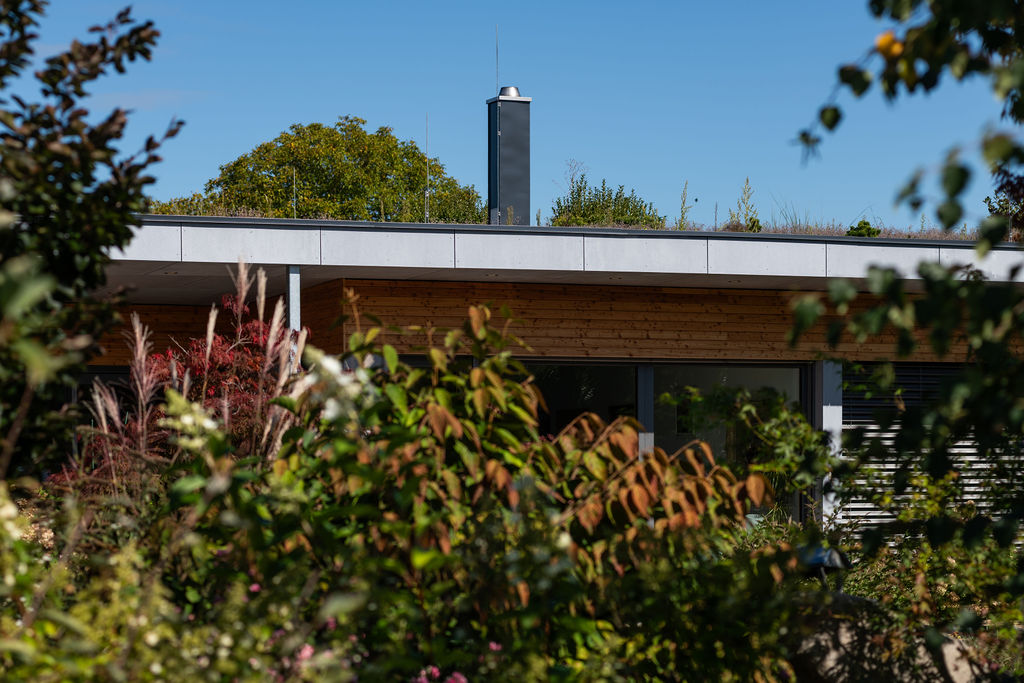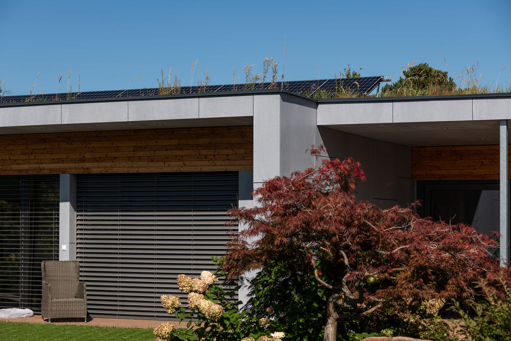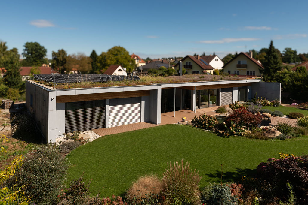 Dům má plochou vegetační střechou, která je rozdělena na extenzivní a intenzivní část. Extenzivní část je osázena nenáročnými rostlinami, které nevyžadují pravidelnou údržbu, intenzivní část obsahuje i trávy, bylinky, a dokonce i nižší keře.