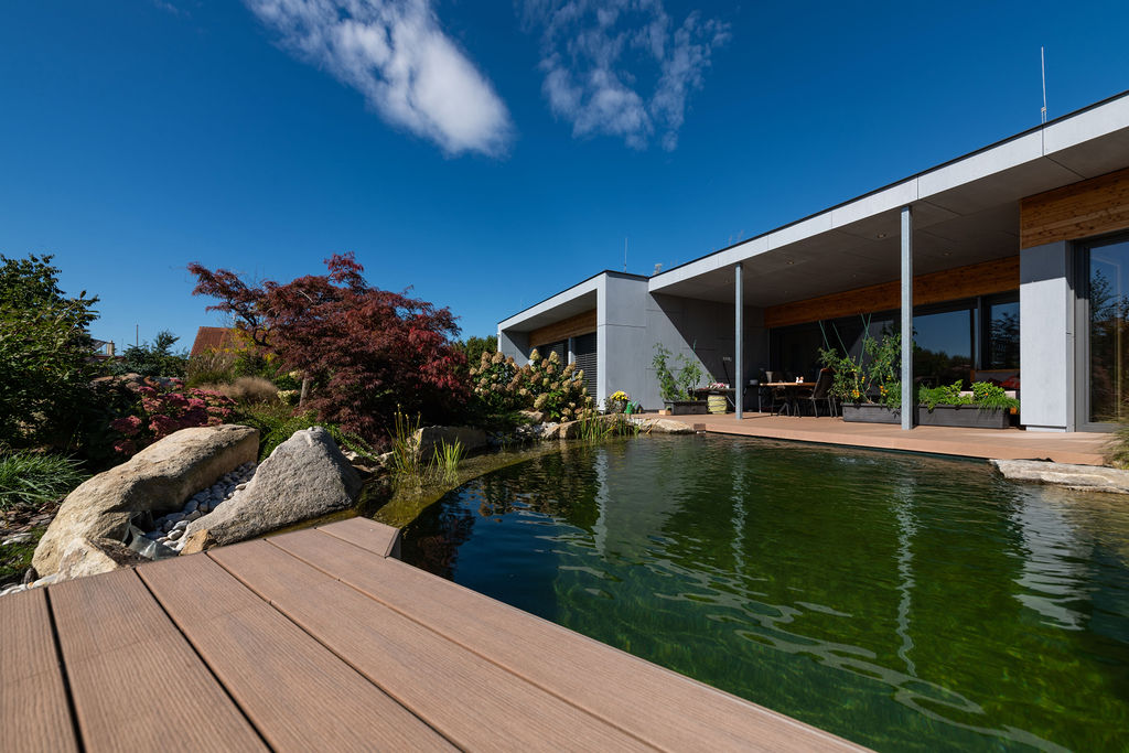 Na okraji Českých Budějovic, v klidné a urbanisticky ustálené menší obci, vznikl rodinný dům, který je důkazem toho, že když se spojí odborné znalosti, cit pro prostor a láska k přírodě, může vzniknout místo, které doslova bere dech. Majitelé si zde pořídili pozemek o rozloze přibližně 3000 m², který proměnili v harmonický celek propojující bydlení, podnikání i zahradní umění.