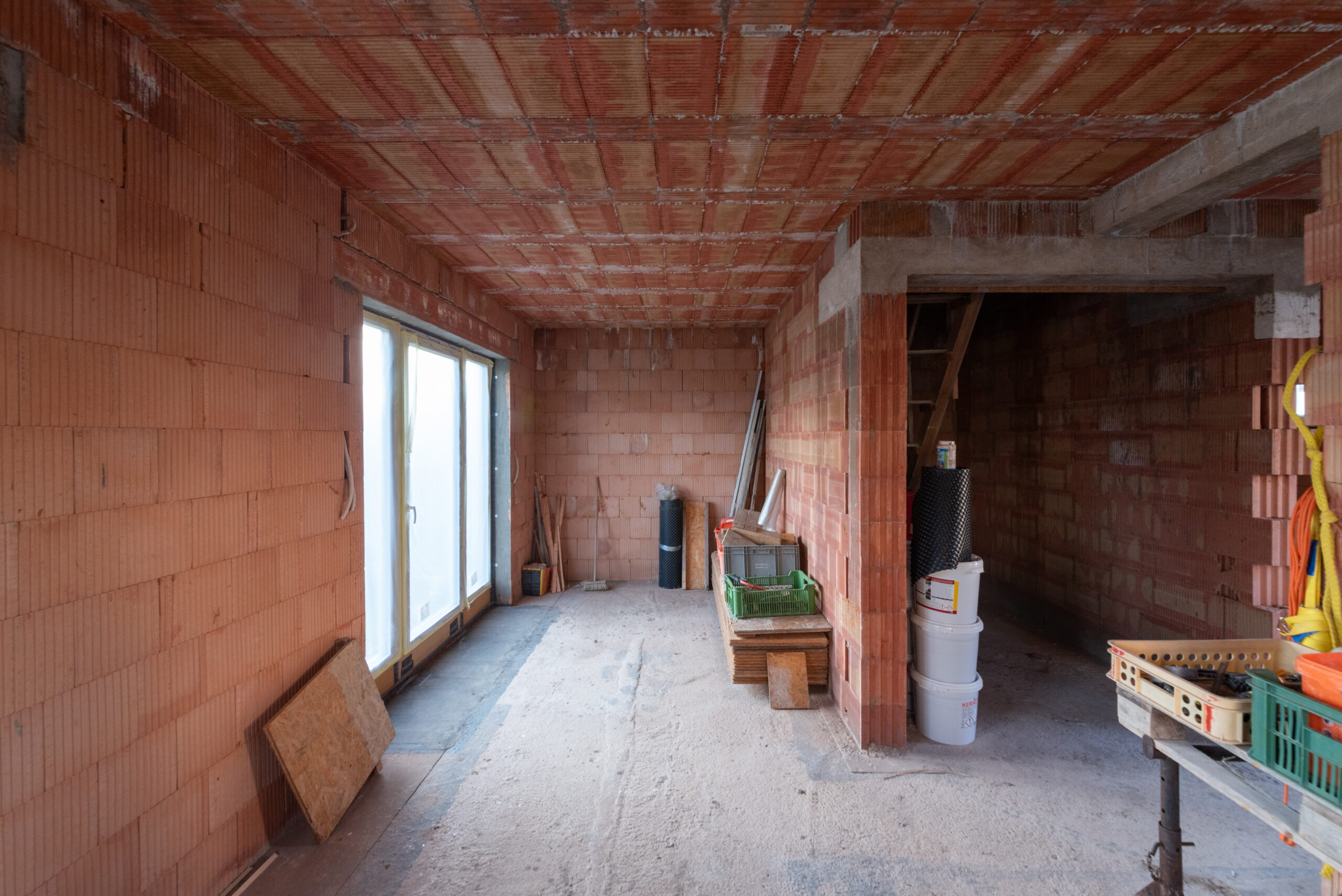 Do budoucna tři ložnice a koupelna. Podkrovní místnosti mají relativně malá okna, ale to byl promyšlený záměr – nedochází tak k nežádoucímu přehřívání ložnic v letních měsících a nebylo nutné řešit předokenní stínění. Jak probíhala samotná výstavba? Majitel asi rok realizoval základovou desku, a to včetně inženýrských sítí. Pouze lití betonu a hutnění nechal realizovat firmou, stejně tak založení prvního šáru zdiva v přízemí i podkroví. Dále se zděním pokračoval svépomocí. Společně s kamarádem instalovali v rozích do rohů jekly se zavětrováním, které pomáhaly s dodržením svislosti, odměření všech svislých částí stavebních otvorů a vodorovné vedení zednické šňůry. Následně se mohl pustit do vyzdívání dalších šárů zdiva, které jsou dokonale vodorovné. Na otázku, jak dokázal rovinnost zachovat, odpovídá, že mu stačilo vyrovnání první řady, kterého se posléze při dalším zdění „držel“. „Opravdu to jde – vyzdít zdivo do tří metrů bez podkládání nebo znovuzaložení,“ říká stavebník.